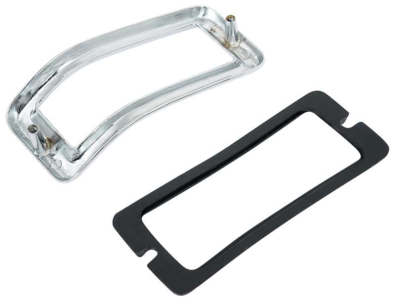 OER reproduction of the original tail lamp bezels, gaskets and studs designed for use on 1967 Mustang models. This popular reproduction is manufactured in die-cast zinc and features a brilliant chrome plated finish with accurate dimensions, contours and mounting points. These reproduction bezels look identical to the 1968 style Mustang bezels, except for the lack of black painted detail around the front surface of each bezel. Bezels include a heavy rubber tail lamp panel seal and mounting studs. Sold in sets. 1 set required per vehicle.