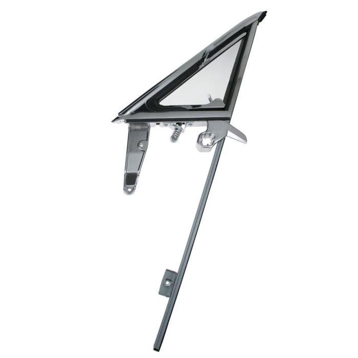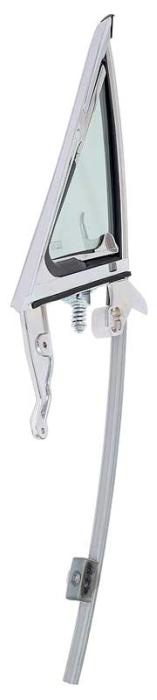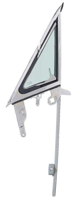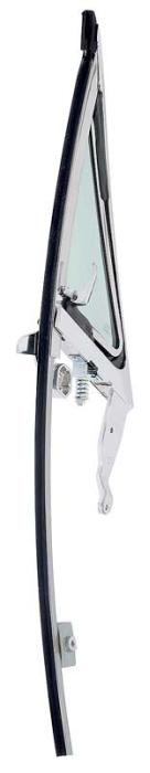 Reproduction of the original 1967 Mustang vent window assembly with glass. Includes the vent window frame, vent window glass, seals, and handle. This superb reproduction is manufactured to exact dimensions to install and fit as original. For Mustang Coupe, Convertible, or Fastback models.