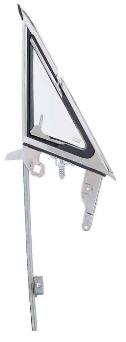 Reproduction of the original 1967 Mustang vent window assembly with glass. Includes the vent window frame, vent window glass, seals, and handle. This superb reproduction is manufactured to exact dimensions to install and fit as original. For Mustang Coupe, Convertible, or Fastback models.