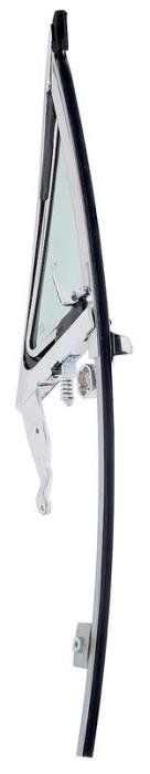 Reproduction of the original 1967 Mustang vent window assembly with glass. Includes the vent window frame, vent window glass, seals, and handle. This superb reproduction is manufactured to exact dimensions to install and fit as original. For Mustang Coupe, Convertible, or Fastback models.
