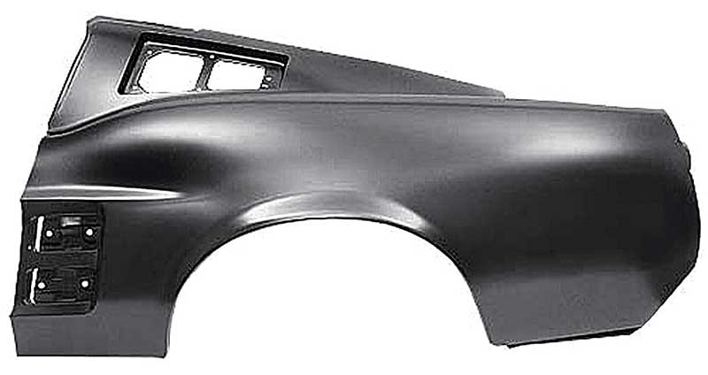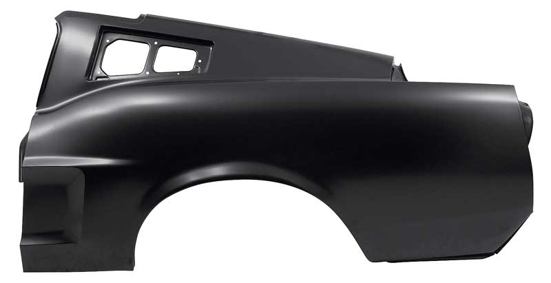Reproduction of the original complete quarter panel designed for use with 1968 Mustang Fastback models (later 1968 models). Each quarter panel is manufactured in stamped steel to original factory specifications featuring correct contours for an authentic appearance and fit. Each Not just a skin, a complete reproduction of the original quarter panel that includes every component found on the original quarter panel. This is a one piece design unlike other reproductions where the sail panel area is not attached. Comes with a black EDP coating for rust and corrosion prevention. Note: For the early style quarter panel with stamped indent side marker, refer to part number 27840MA.