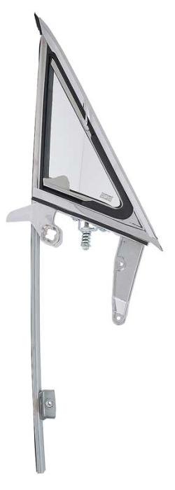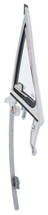 Reproduction of the original 1968 Mustang vent window assembly with glass. Includes the vent window frame, vent window glass, seals, and handle. This superb reproduction is manufactured to exact dimensions to install and fit as original. For Mustang Coupe, Convertible, or Fastback models.