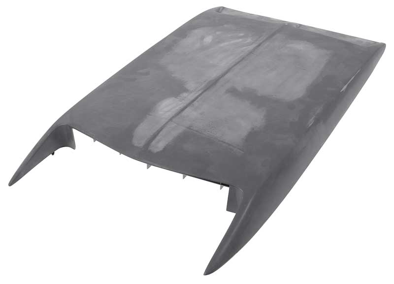 Accurate high compression fiberglass reproduction of the 1969-70 Mustang GT or Mach 1 style hood scoop. Includes the grille and mounting hardware. Turn signal indicator assemblies, part # 13A355B, are not included, but sold separately. Each scoop comes with plastic amber lens delete plugs that can be installed in place of the original style turn signal indicator assemblies should you decide not to use the original style turn signal indicators. Transform your base model 1969-70 Mustang into GT status or replace the missing or damaged original GT/Mach I scoop with this authentic reproduction of the factory original Ford item. Dimensions are 27-1/2" L X 15-1/2" W X 2-1/4" H.