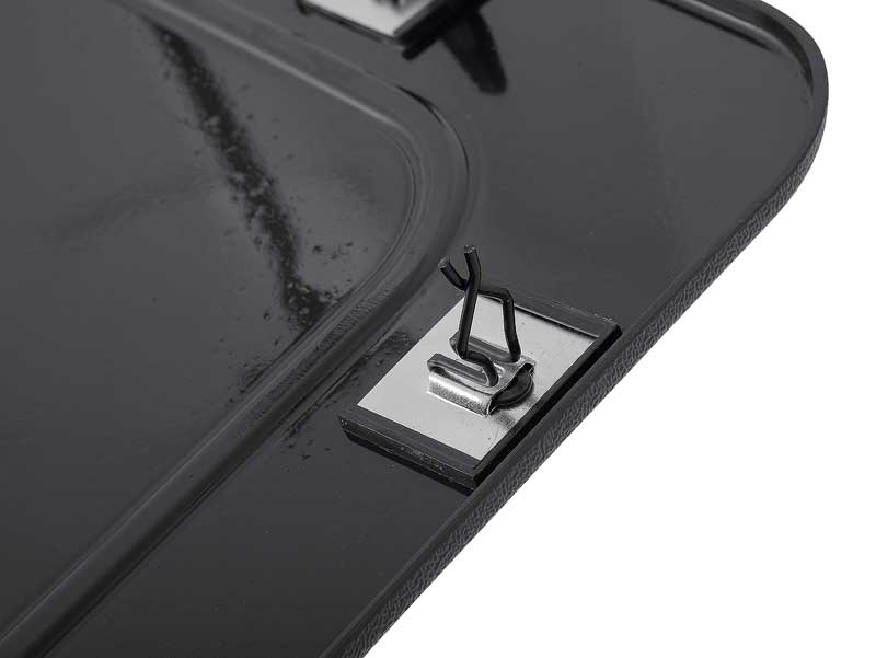 OER® Authorized reproduction seat back panel for 1969-70 Mustang/Cougar produced in injection-molded black plastic. Correct grain and simulated stitching. Provisions for retaining clips installed on backside.
