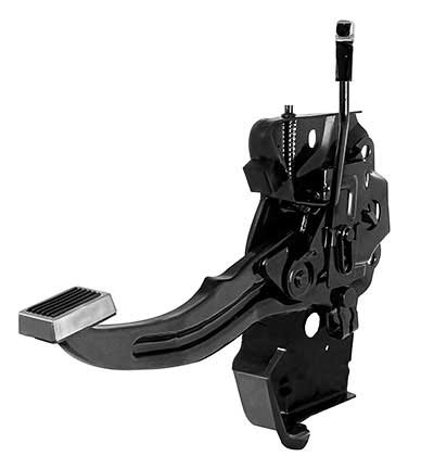 Reproduction of the original parking brake assembly for use with 1969 Mustang and Cougar models. Complete parking brake assembly with foot operated arm and release mechanism. The parking brake assembly is mounted under the dash. Includes the foot pedal and a custom pedal pad as well as the hand release lever and handle. For use with Fastback, coupe and convertible models.