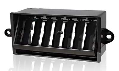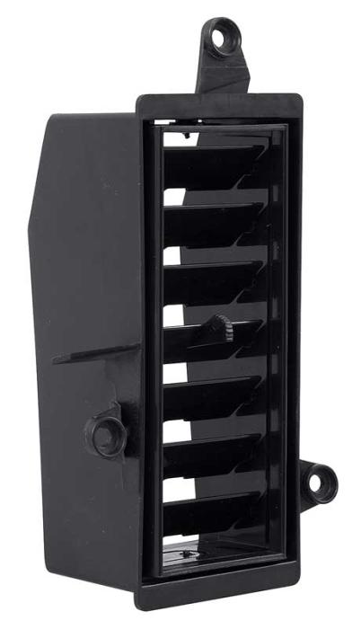 Reproduction of the original vertical air vent register designed for use with 1971-73 Ford Mustang models. This dash vent is manufactured to original factory specifications. Located at drivers side of the dash panel. Allows direction of air to the left or right, and up or down. Accurately reproduced. Fits all 1971-73 Mustangs equipped with factory air conditioning. For use on the passenger side.