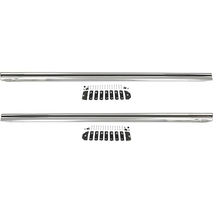 Reproduction rocker panel moldings for 1971-73 Mustang. Each molding is manufactured in aluminum to exact factory specifications offering a perfect fit and original appearance. Installs along the rocker panel below the door on either side. Sold in pairs. Includes RH and LH rocker panel moldings. Installation hardware included.