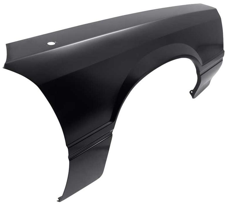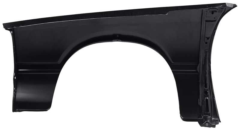 Reproduction front fender for 1979-90 Mustang models (except SVO). This fender is an excellent replacement for your rusted or damaged factory originals. Each front fender is manufactured in stamped steel to original factory specifications featuring correct contours for an authentic appearance and fit. Comes with a black EDP coating for rust and corrosion prevention.