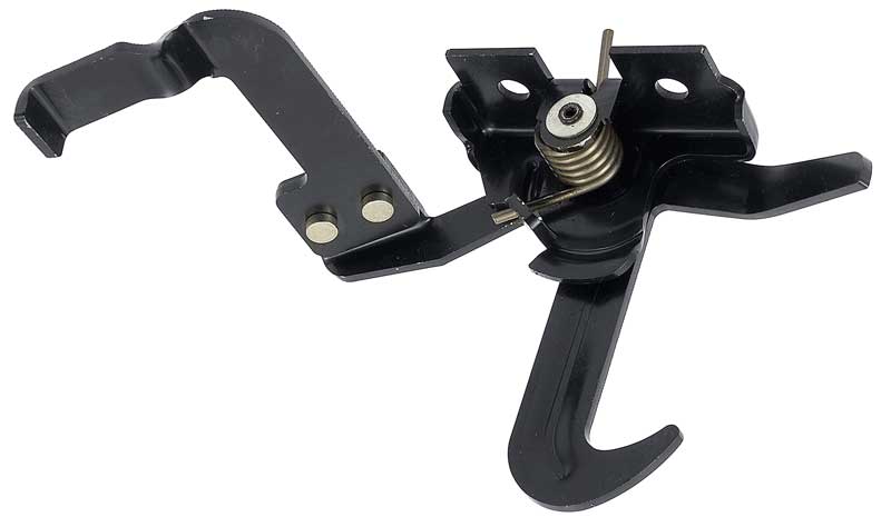 Reproduction of the original hood safety latch mechanism designed for use with 1987-93 Ford Mustang models. Each safety latch assembly is manufactured to factory specifications featuring correct pre-drilled holes and mounting points for easy installation.