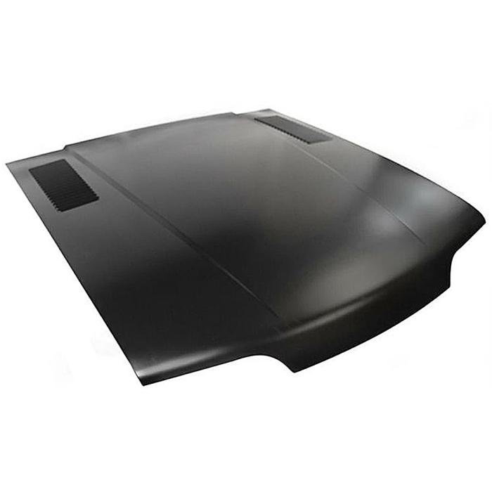 Reproduction of the original hood assembly designed for use with 1987-93 Fox Body Mustang models with custom vent louvers. Each hood panel is manufactured in stamped steel to original factory specifications featuring correct contours for an authentic appearance and fit. Features the correct understructure replicating the original in design, appearance and fitment. This is a bolt on style hood that uses the original hood hinges and hardware. Comes with a black EDP coating for rust and corrosion prevention.