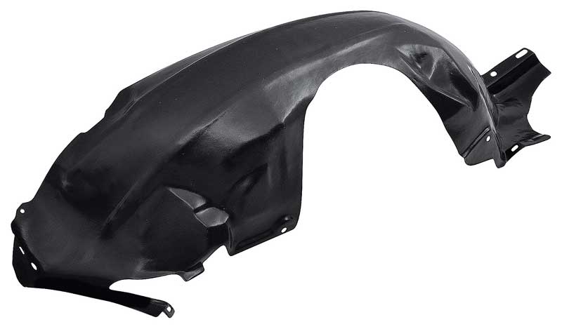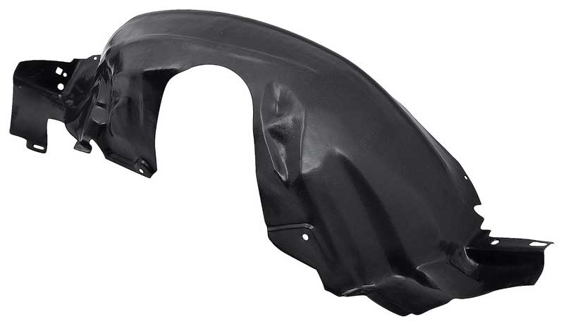 Reproduction of the original style plastic inner front fender liner for use with 1994-98 Mustangs. Also known as a splash shield or inner fender well, this plastic liner is an exact copy of the original part designed to replace a broken or missing liner precisely. Installs beneath the front fender to prevent water and road debris from being splashed into the engine compartment and onto the front cowl and inner fender area. Helps to weatherproof the inner fender area to prevent corrosion of underbody components from road salts, water, and other debris.