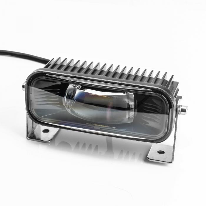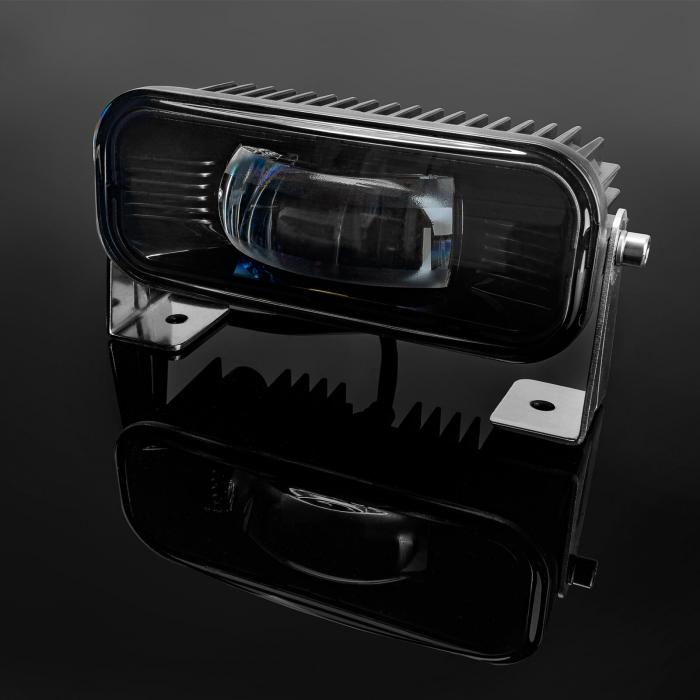 Forklift Pedestrian Safety Warning Line promotes worker and workplace safety. LED Safety Warning light is mounted to a forklift or other moving vehicle and projects bright line on floor surface. Since multiple lights can be mounted onto a single fork lift truck, the warning lights can be seen behind, in front, or on the side of the forklift. The bright line on the floor is clearly visible to pedestrians, machines and vehicles in the area, regardless of the ambient noise, alerting them to the nearby presence of the forklift. Traditional audio back up alarms can blend into ambient noise in the building and pedestrians can become immune to the audio warning.