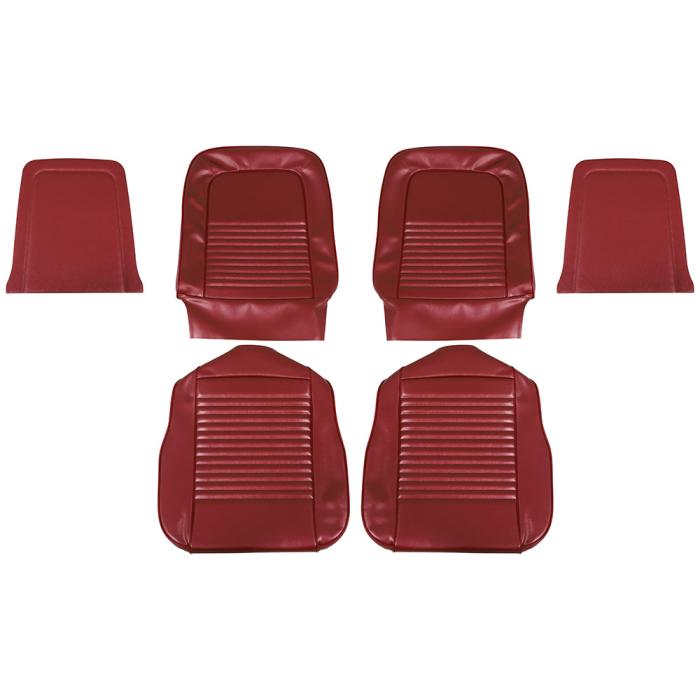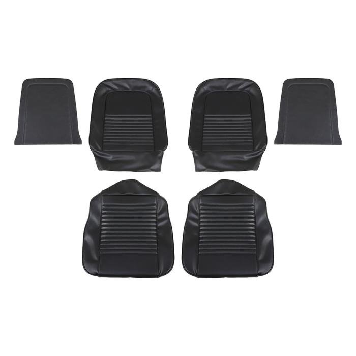 - Full sets include upholstery pieces for both front bucket seats and the rear bench seat.
