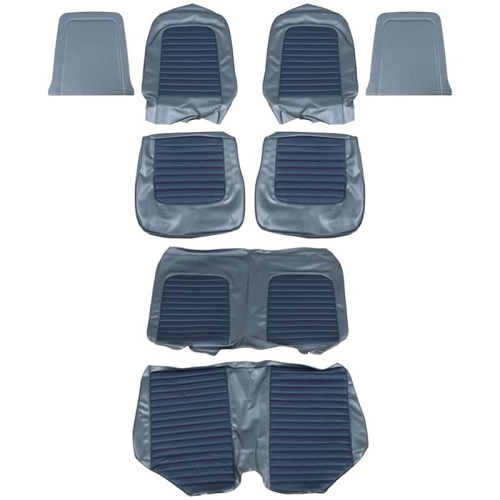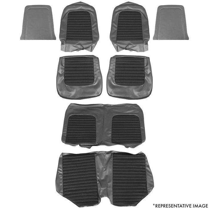 - Full sets include upholstery pieces for both front bucket seats and the rear bench seat.