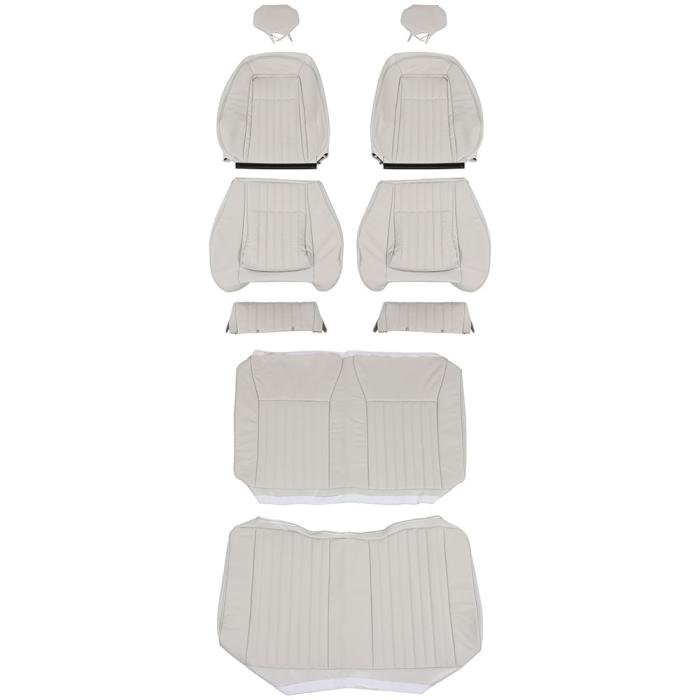 - Full sets include upholstery pieces for both front bucket seats and the rear bench seat.