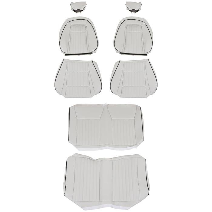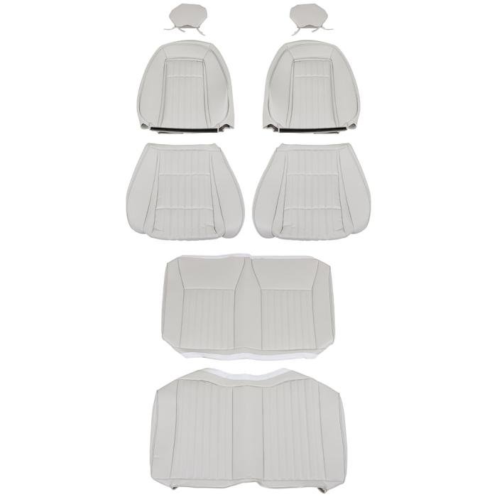 - Full sets include upholstery pieces for both front bucket seats and the rear bench seat.
