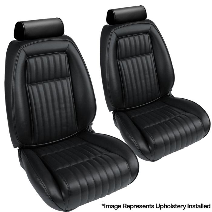 - Front upholstery kits include driver side and passenger side bucket seat upholstery only.