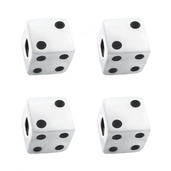 United Pacific White Dice Valve Caps w/ Black Dots (4 Pack) 70006: