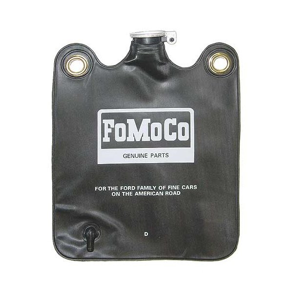 Reproduction Of Original Hinged Flip Cap Design We have the correct washer reservoir bags for your classic Ford with either the flip cap or screw on lid designs. Comes in black with the correct FoMoCo lettering in white as original. NOTE: For The Screw On Cap Version See Part Number 63-10494